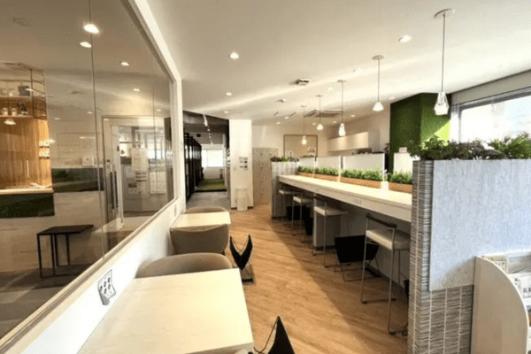 BasisPoint 池袋店は、池袋駅東口からわずか徒歩1分という、誰でも迷わない最高のロケーションにあります! 店内は、コワーキングスペースが初めての方でも、まるでお気に入りのカフェのように気軽に立ち寄れる、おしゃれで開放的な雰囲気が自慢です。